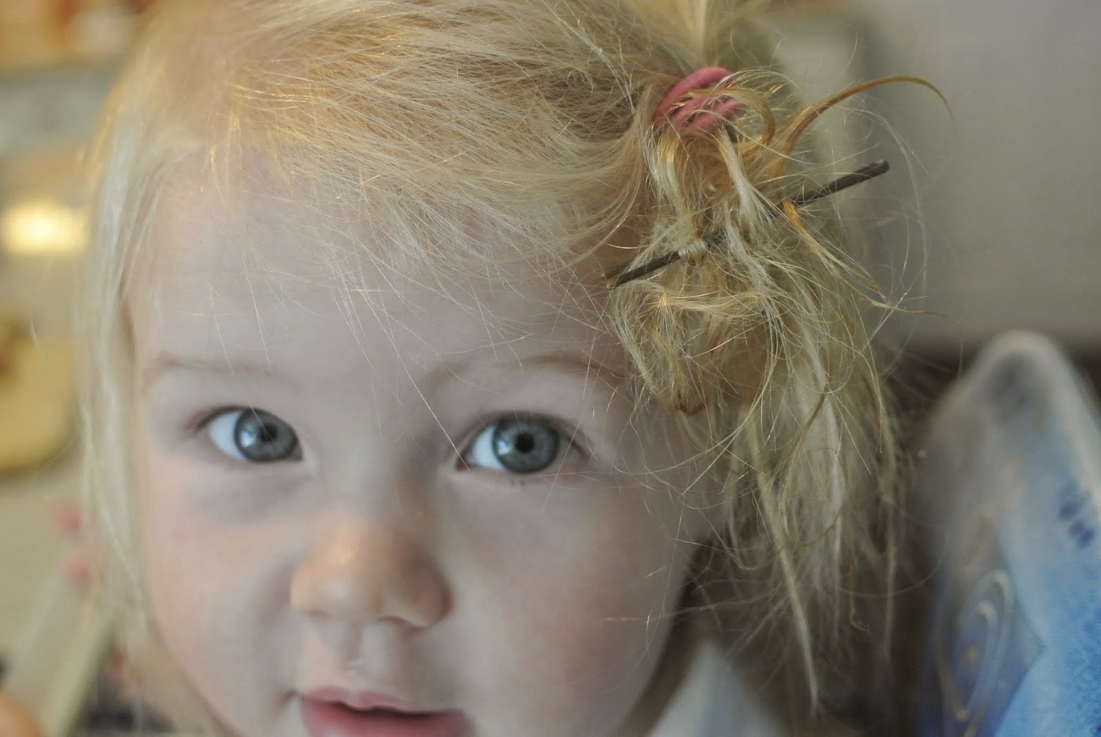 Lulu had a super nasty snarl in her hair after I put her down to sleep in multiple hair things. I was pretty sure she was going to end up with bangs. But this magical brush