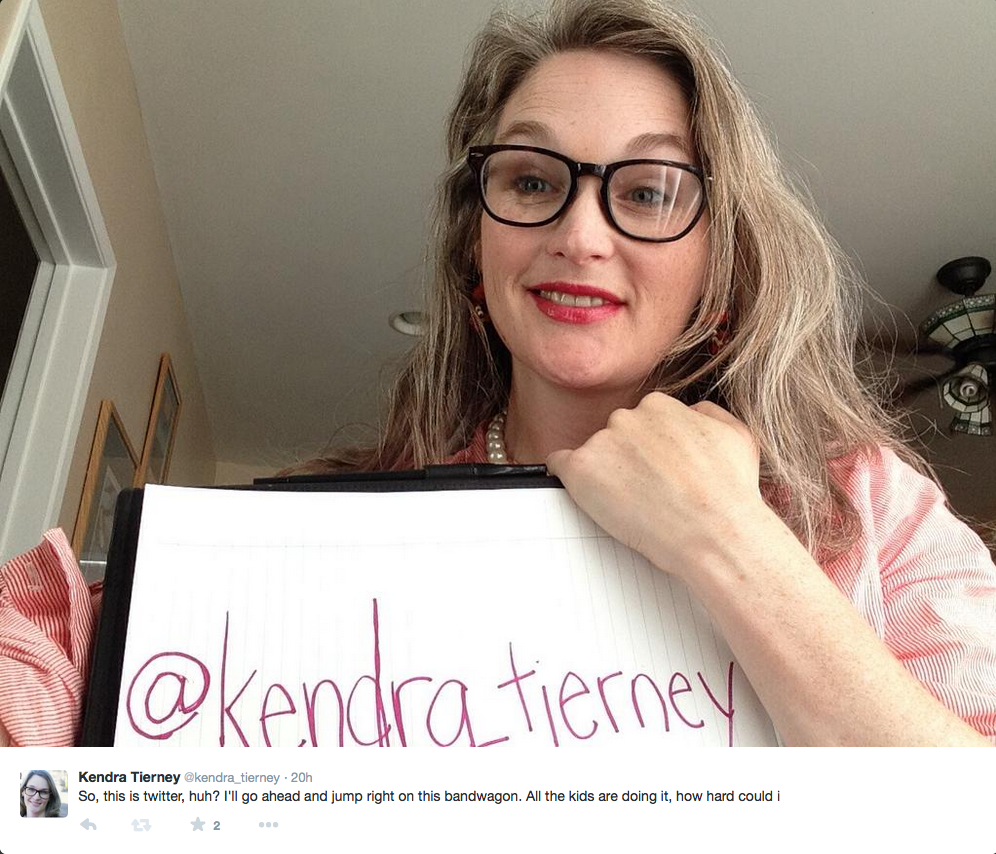 The BIG NewsI'm, um, on Twitter. Like three people are following me right now. YOU could be number four. I'm @kendra_tierney.