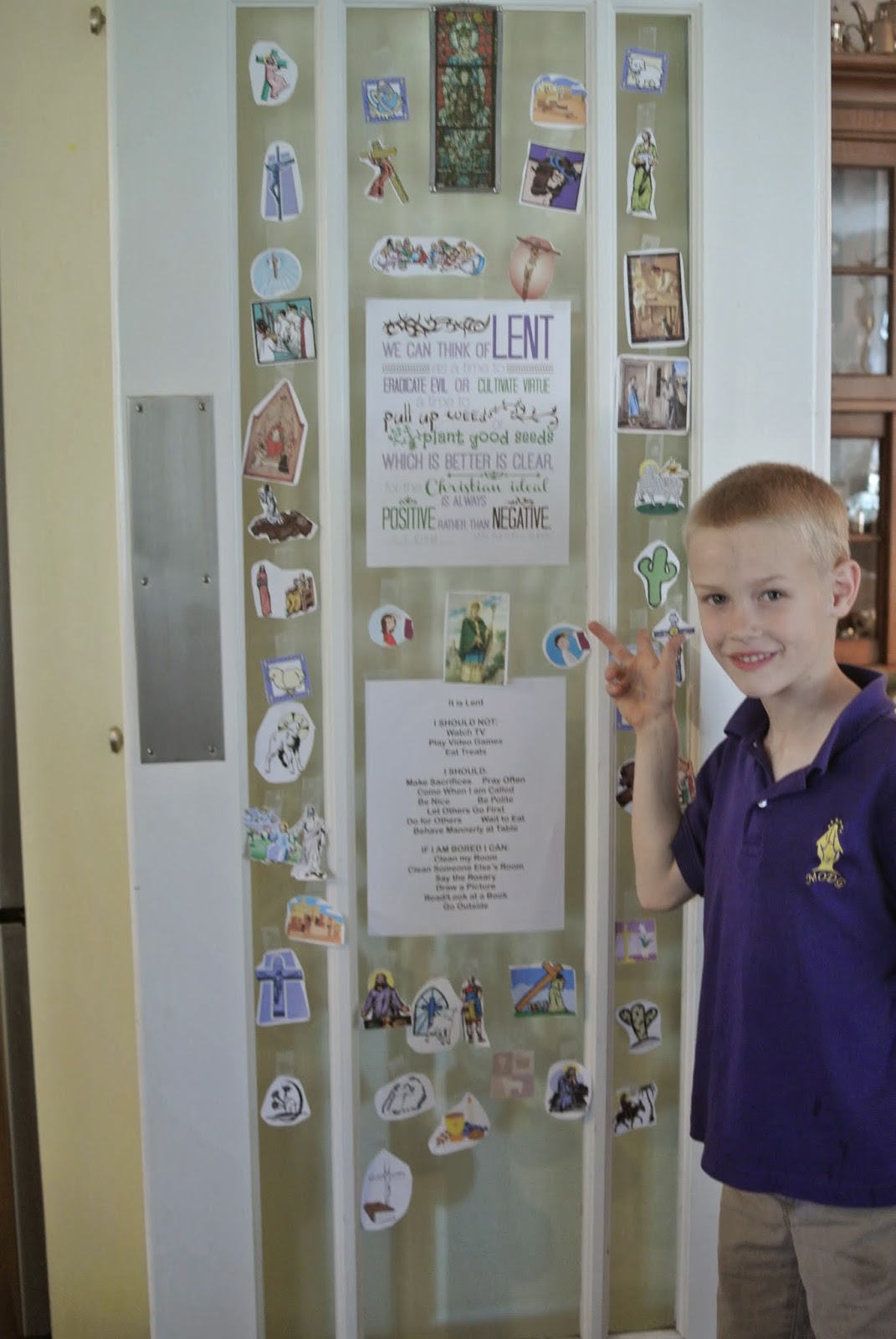 And Gus put the Clipart Lent Calendar on the door. By the way, a couple folks have said they couldn't get it to download properly so they could print it out. If it didn't work for you and you still want it, send me an email and I'll send it to you as an attachment. If it DID work for you, will you let me know in the comments, so I know if it was an isolated glitch or a total failure.
