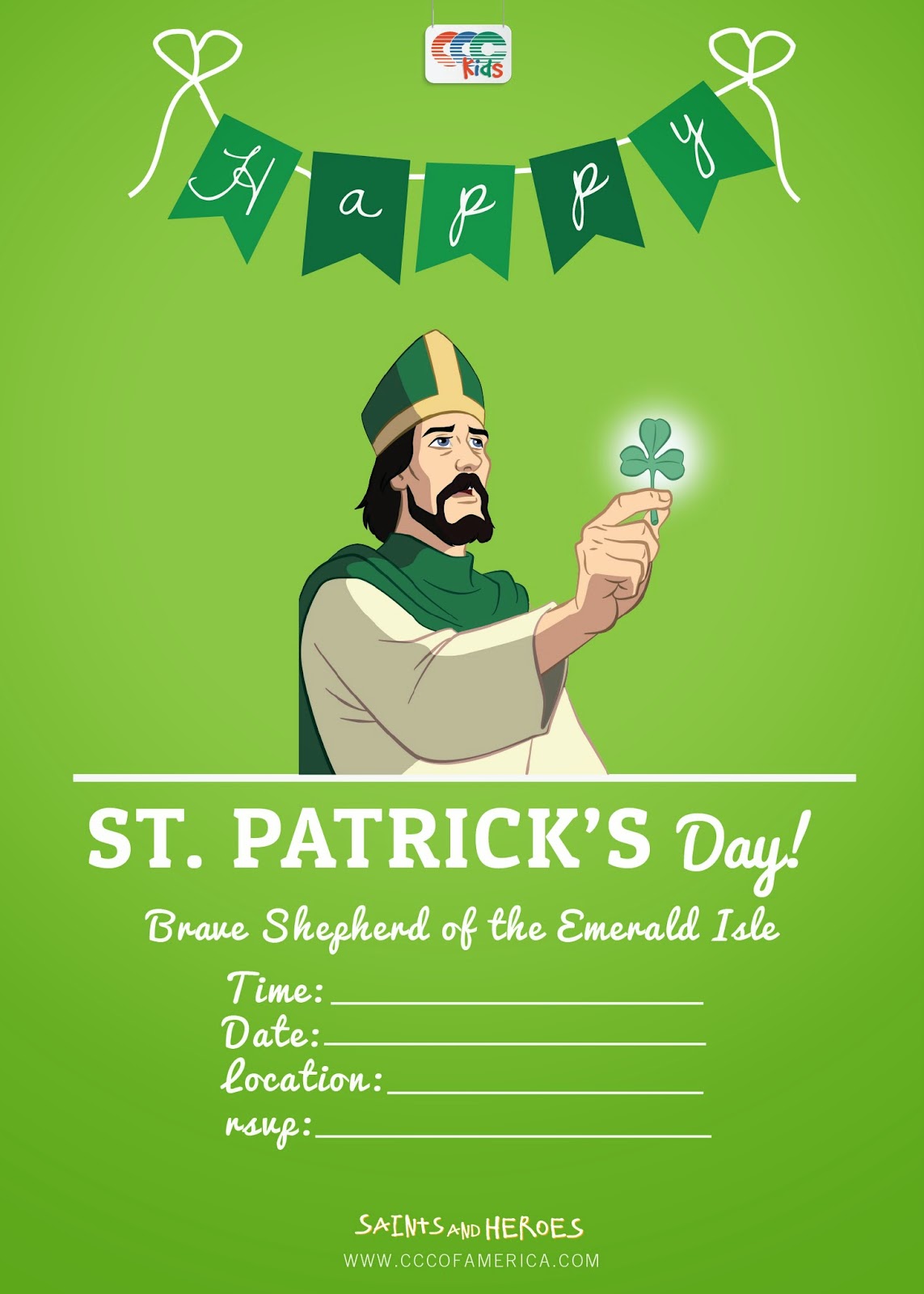 Green juice, goldfish crackers, maybe some grapes . . . would totally get the job done. Kids would love it. Give my kids store-bought shamrock cookies and they'd love you forever.- the entertainment -After snack time, I like to have some sort of saint-themed entertainment for the kids. We have quite a few of CCC of America's Saints and Heroes animated films, and Patrick: Brave Shepherd of the Emerald Isle was the very first one we ever owned. The CCC films present kids with the stories of the saints in a fun, accessible way. Letting my kids watch these shows has been a really easy way to help them become familiar with the lives of the saints. St. Patrick's story uses a mix of history and legend to teach kids about the kidnapped boy, who grew up to become a bishop and missionary in the land of his former captivity.