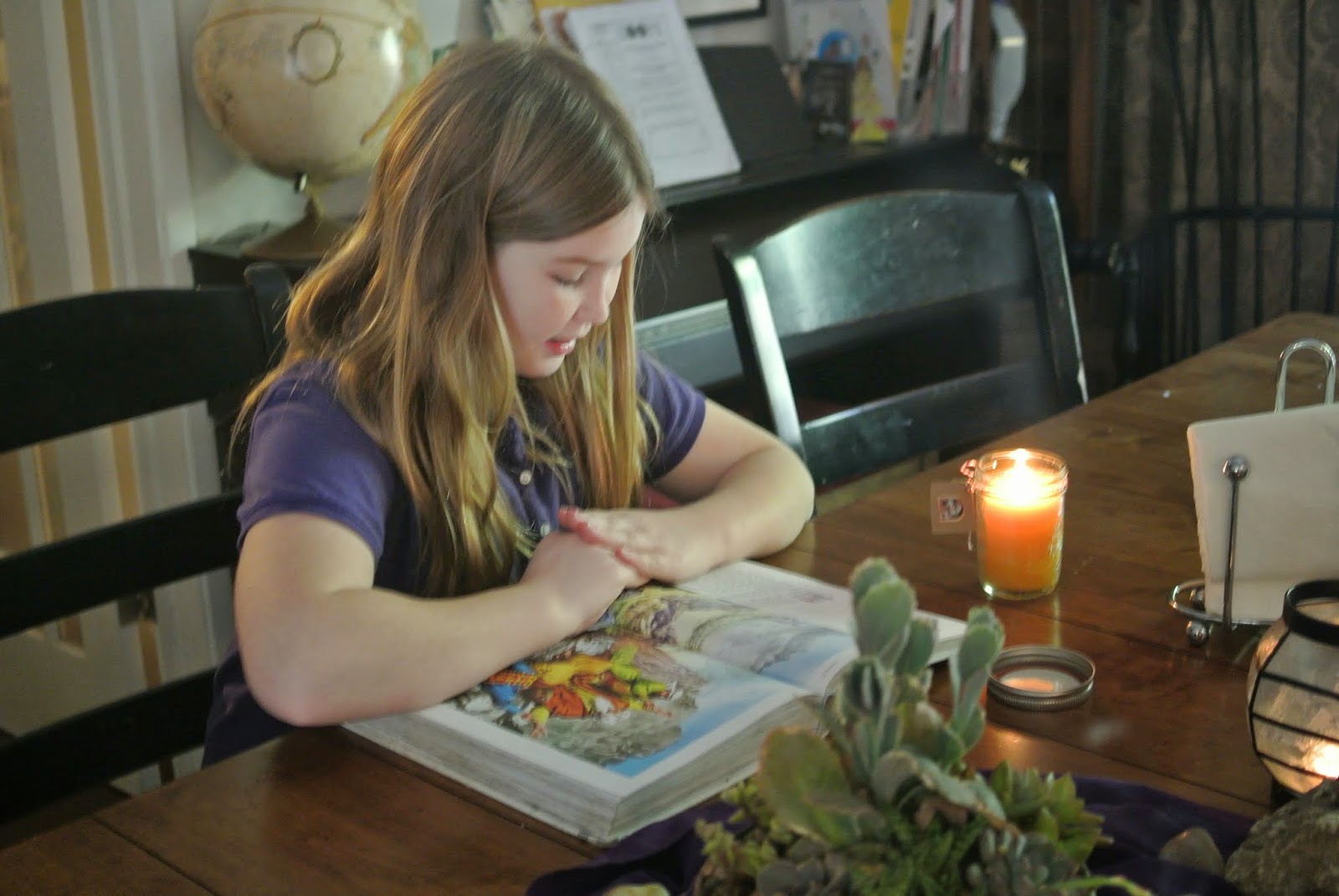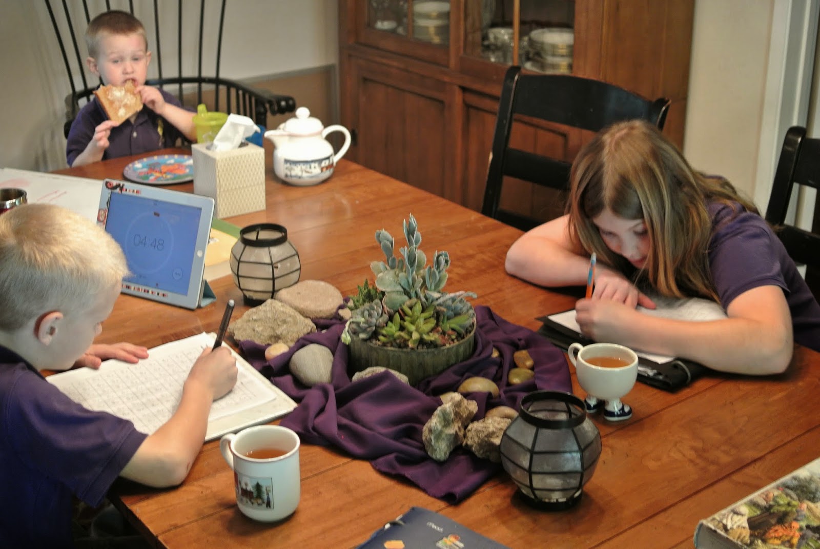 We put a somber and meaningful centerpiece on our dining room / school table. So, from now on any spacing out will be Lent-focused.