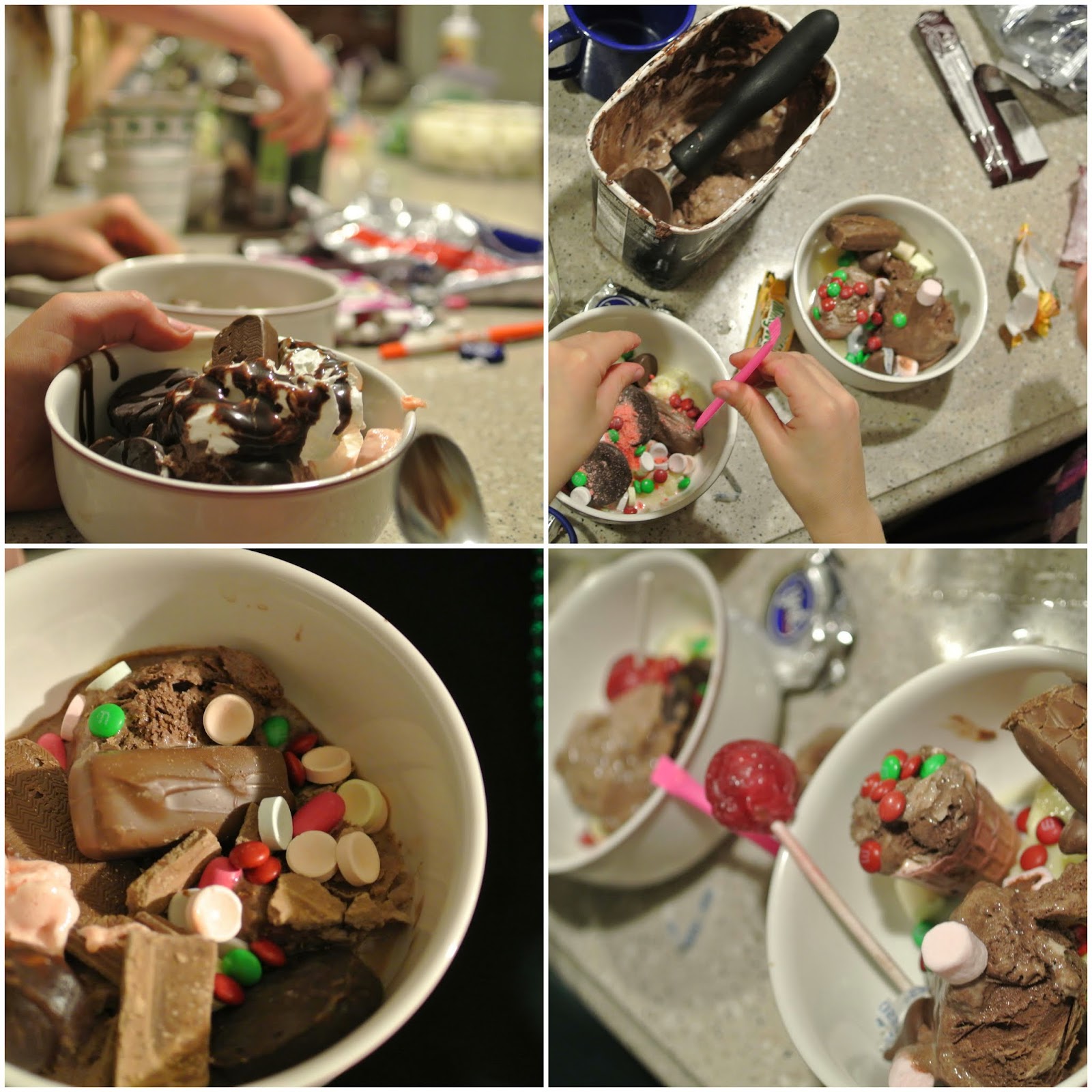 The kids make these ridiculous ice cream sundaes. And then EAT them.