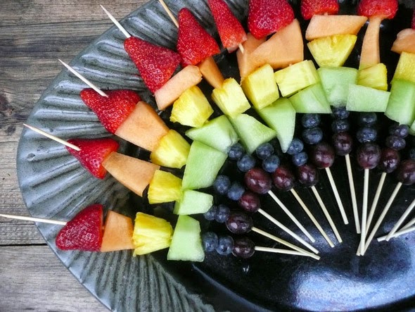 found hereMost of my kids actually LIKE cream cheese and cucumber sandwiches. But I'd probably make some pb&j versions as well.And some fruit-kebab rainbows . . .