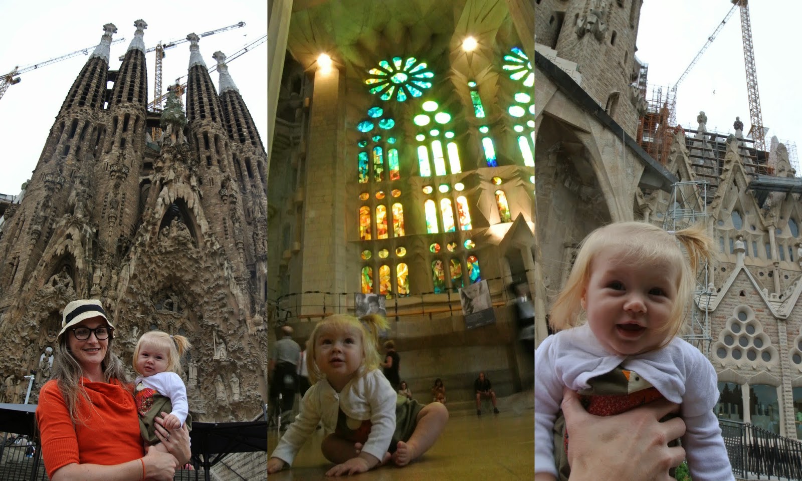 That taken care of, we set off for Barcelona. Lulu and I had a bulkhead seat, but the husband was waaaaaaaaay in the back, because normally you have to pay to upgrade to the bulkhead row. So it was her and me. And the two businessmen next to us. It was a long flight, just over seven hours, but Lulu slept for less than two. She spent the rest of the time frantically trying to get the attention of her fellow passengers. She just couldn't believe they would want to sleep through all the great stuff she was doing. It really is the craziest age to try to travel. And I MAY have wasted a good portion of her sleep watching a movie I didn't even like. But Lulu arrived chipper, as usual . . . if a tad bit suspicious of Catalan.