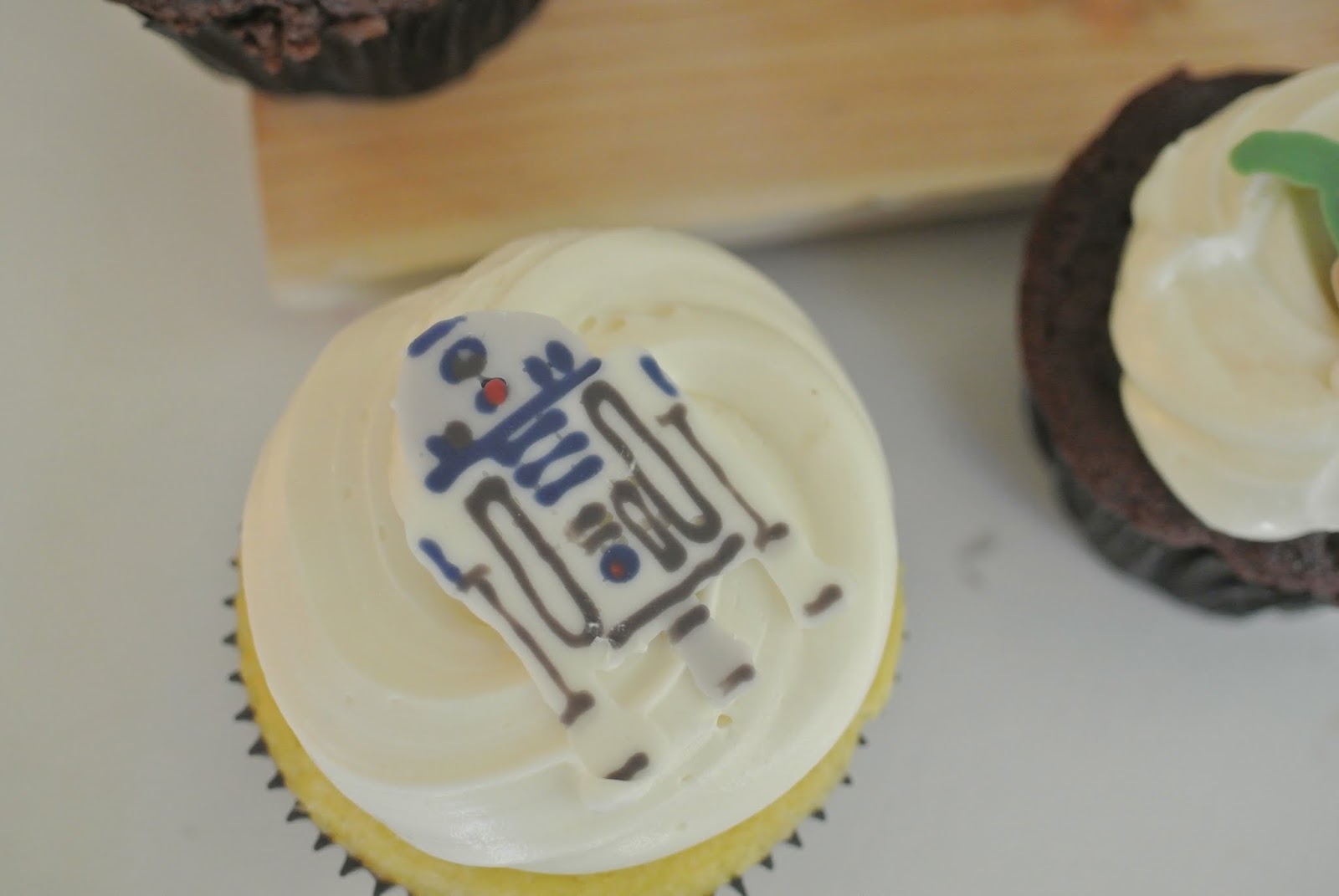 I made candymelt cupcake toppers, again, because my cake pans are still packed up. But also because cupcakes are quite portable. And I made them like this . . .