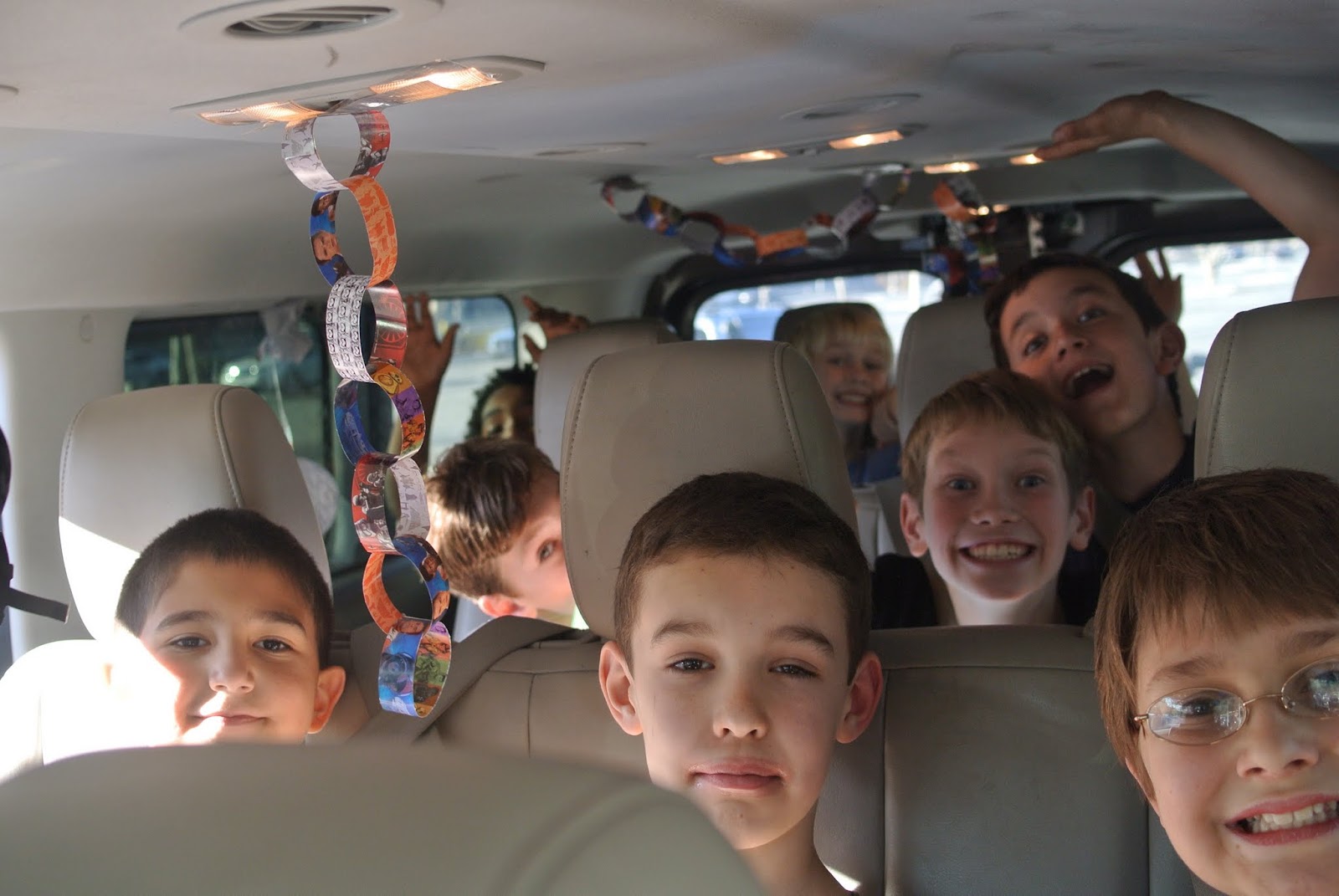 The morning of the party, Bobby and Gus cleaned out the van, and decorated it with a few hanging decorations we got at the party store.