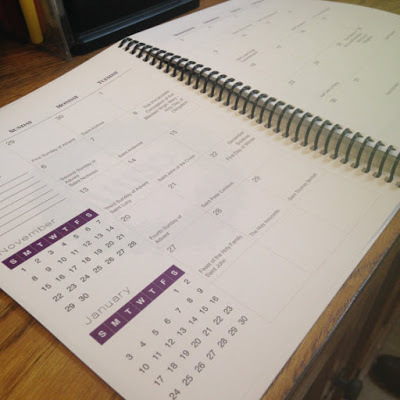 - monthly view includes Catholic liturgical year feasts and seasonal dates as determined by the USCCB