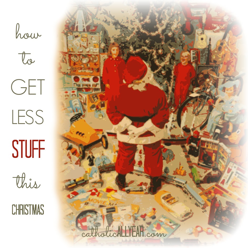 What worked for us was being really open about wanting to de-clutter our homes and our lives. Before the holidays, I did a big clean-out of all the kids' clothing, toys, and junk, and I made sure that the family knew about it. Then, I used that as a jumping off point to ask for a simpler, less-stuff Christmas.