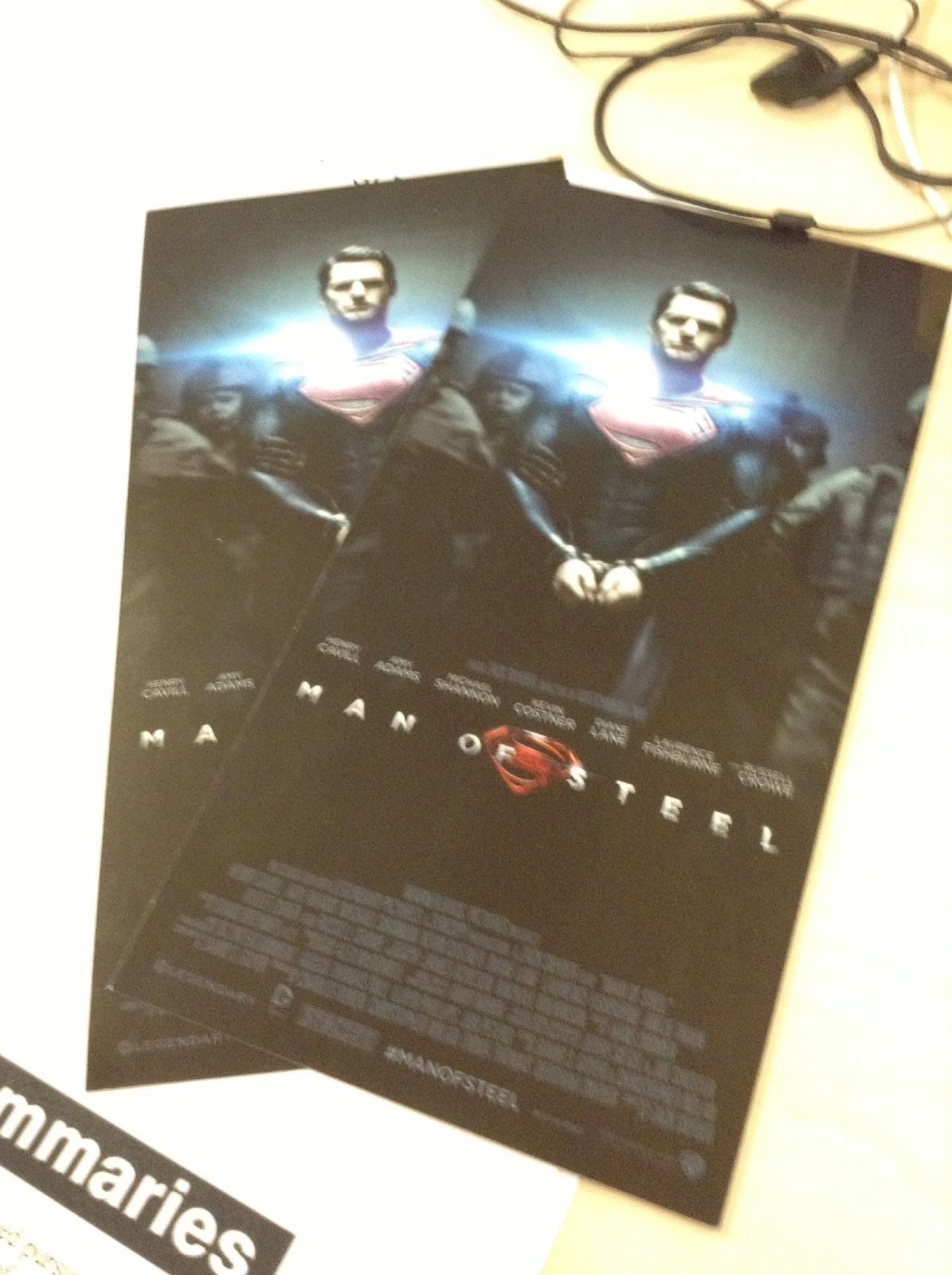 So, yesterday at work I got a fabulous surprise when my boss handed me two preview tickets for the much anticipated new Superman movie Man of Steel (so all my ponitifcating about how much I wanted to see it actually worked!!)So I dashed down to Leicester Square after work, met up with Son1 and lovely reviewer friend who also had tickets and embarked on what turned out to be quite an experience...