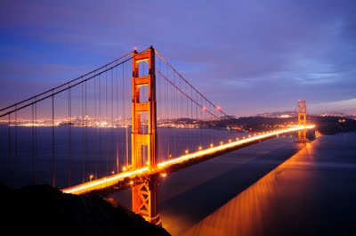 Can you tell I'm waiting to hear back from my ed on my latest offering?? Yes, this is why I'm currently blogging like crazy, because I've already bitten off all my nails. Hate this bit... How is it that as soon as you press that send button you then go back and re-read your ms and discover all those things that need to be corrected that you should have spotted in the edit! GroanAnyway, enough about me. I have now got a sneak peak of The Good, the Bad and the Wild up on my website... Go have a read and tell me what you think. And in honour of it, I've added a lovely istock photo of San Francisco's iconic Golden Gate Bridge, anyone want to guess where Eva and Nick go for their bike ride after meeting in that art gallery???