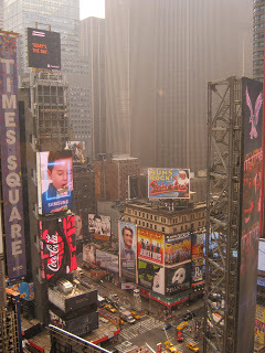 The gorgeous Ms Abby Green, my amazing roomie (she made me to say that, btw), did a fabo job getting us a room with a great view of Times Square, so when I got in jet-lagged and exhausted after a 10-hour flight (which should have been six - thank you so much Virgin Atlantic and the nice peeps at JFK airport! Grrr) the par-tay was on. That said, sharing the flight agony with Sharon Kendrick, Sue Stephens and Carole Mortimer made it a lot less of a trial.