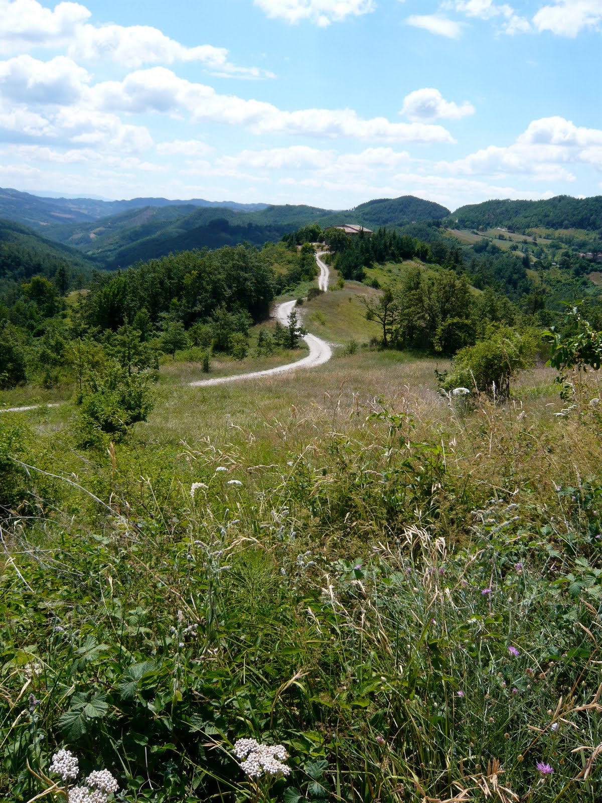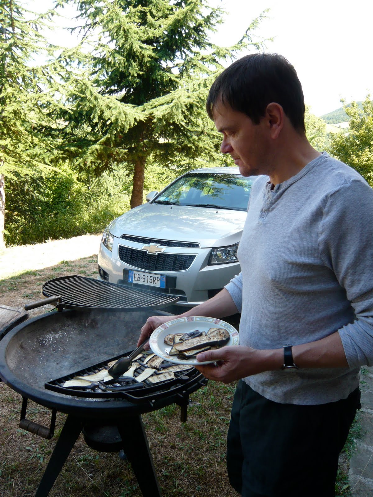Hey all, just sitting in a Villa hotel outside Florence having great fun trying to write a blog with blogger tools all in Italiano!! Have a few happy snaps to decorate this post of the gorgeous ten-bedroom house we did a big family get-together in La Marche last week. Very remote and non-touristy... And cooking for 20 people, what a blast, hence the pick of my DH grilling about a billion aubergine slices on the barbie and me with two tons of shopping at the local market!