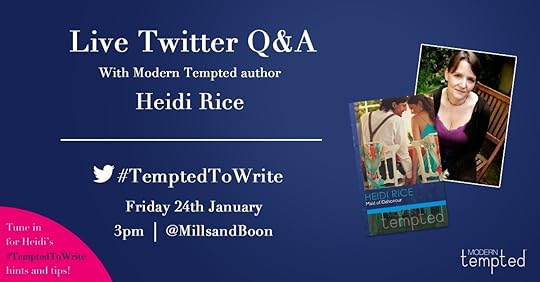 In other news I'm taking part in the #TemptedtoWrite Twitter comp being run from 20-24 January by Mills and Boon for aspiring authors wanting to write for Modern Tempted (aka Harlequin KISS in the US). I'm one of the judges - along with the fabulous Charlotte Phillips and Joss Wood — and I'll also be doing a live Q&A on Twitter on Friday 24th January at 3pm. So be there, or be a donut! For more details check out M&B's Facebook page.