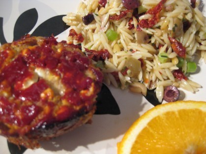 Are you always on the lookout for vegetarian dishes that taste meaty? I try to limit bad cholesterol, and even chicken, turkey, and other lean meat contains some. My vegetarian recipe below can be baked in muffin tins or could be meatballs. I find it is time saving to use some nearly completed ingredients such as below, veggie burgers and uncooked polenta. It’s hard to make perfect meatloaf slices with vegetarian meatloaf. My husband hails from New Jersey and puts ketchup on everything.