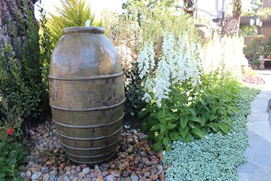Yesterday I cleaned up our backyard fountain and got it going. The soft splash of water adds life and motion to our postage-stamp-size backyard. It attracts more birds than still water alone, and its soothing babble covers up traffic noise. Our lot backs up to Culver which is a busy six-laner going into the 405.