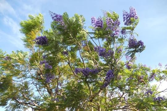 As mentioned in an earlier post, the summers of my youth in Saigon were painted in brilliant red and orange from luxurious blooms on poinciana trees all over the city. But here, in sun-drenched Southern California, summer ushers in a different color---the purple-blue freshness of jacaranda blooms. My first summer after moving here, when I looked up and saw those beautiful blue clusters lining the city streets everywhere, I couldn't believe my eyes. Ever since then, this lovely shade has become the color of summer for me.Even after all these years, my fascination with the jacaranda blue has never waned. Whenever I spot a beautiful tree outlined against the summer sky, it's impossible for me to resist snapping a few pictures. The photo above was taken just before the 4th of July weekend on a small street close to where I live, and I thought I would share it with you---as my summer gift to you, and as a token of my appreciation. For you see, I'm very excited to also share with you some recent good news about Once upon a Mulberry Field, which you're all responsible for making happen.