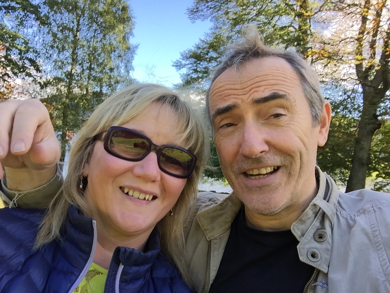 Sheila and me by Hawes End adding ourselves to the picture. The whole point of the trip was to point out the necessary subjective element in the story. I have a very Scottish mouth in this picture I think.