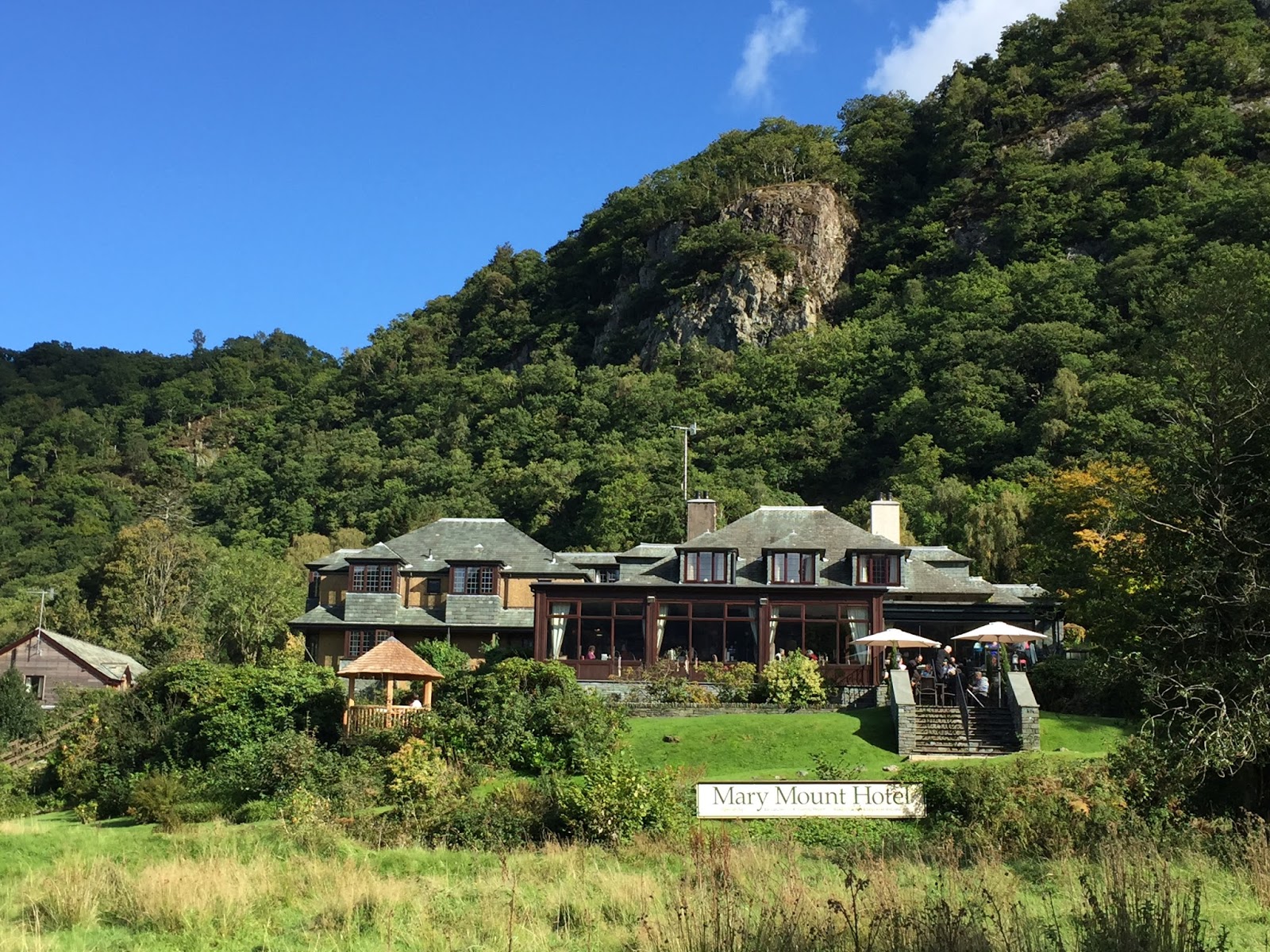 Mary Mount Hotel where I had a lager shandy and Sheila had a pint of orange juice and lemonade because we were thirsty. The barman/owner wasn't as friendly as he has been on other occasions. We then walked to the landing stage and realised we couldn't get round and had to go back onto the road for a bit.