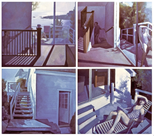 To the banister, so orderly, so planar, (so plain). Cool inside,