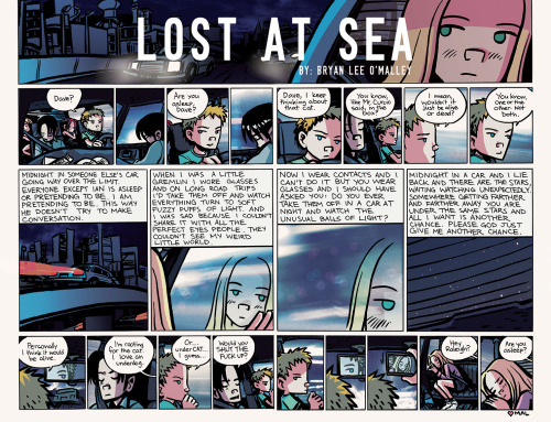 Lost at Sea is a story about two streams of information: the inside of your head, and what’s going on in the world around you. This early 2-page strip (done a few months before commencing work on the graphic novel) jumbles all that information into one page. But I also split it here into two separate strips in order to make it more readable on tumblr or on mobile devices.
