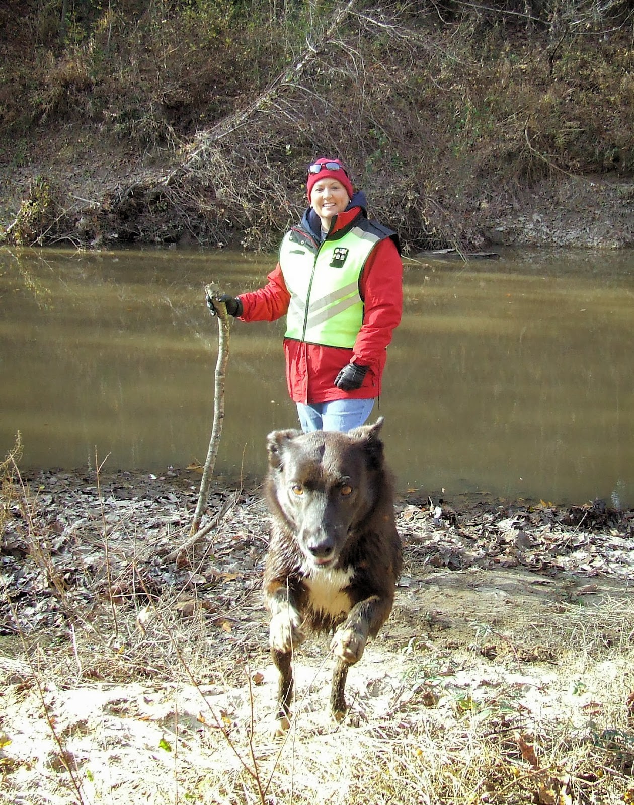 Lou loves water, and can't resist diving in regardless of the temperature. I would have joined her, but I left my tiny red Speedos back at base camp.