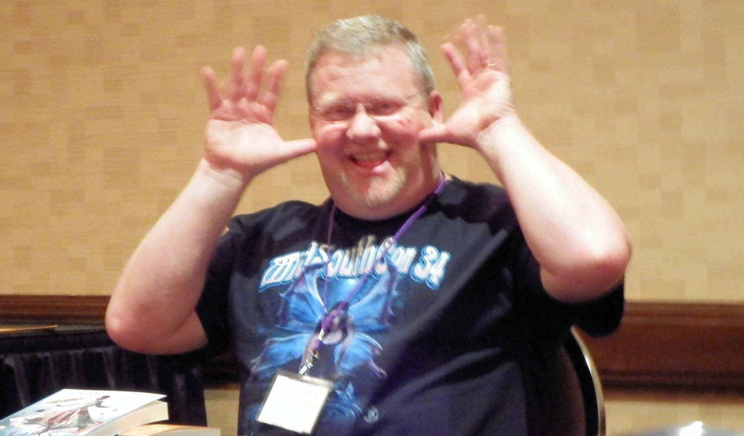 Finally, a pic of the author presenting a professional, properly authorial image on a panel: