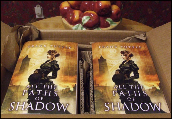 One such truck delivered to me a heavy box filled with books so new I could smell the ink. That's right, boys and girls -- All the Paths of Shadow is now out in glorious three-dimensional hold-it-in-your-hand print!