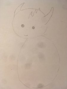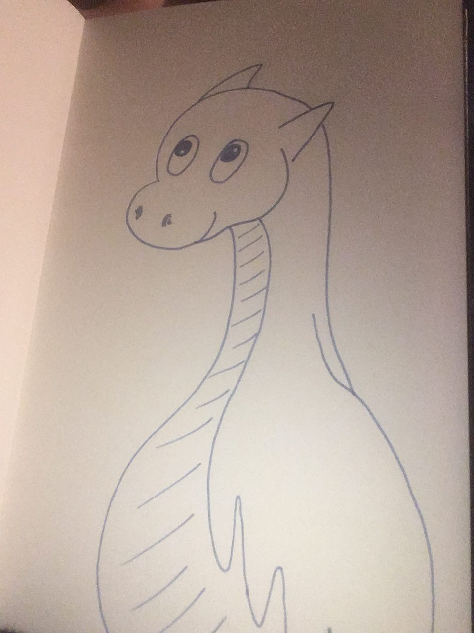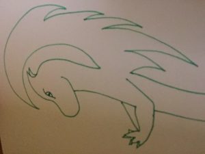 I’m tired. So I drew this dragon, and his face kept growing and growing. He’s going to take flight, without a twitch of his wing.
