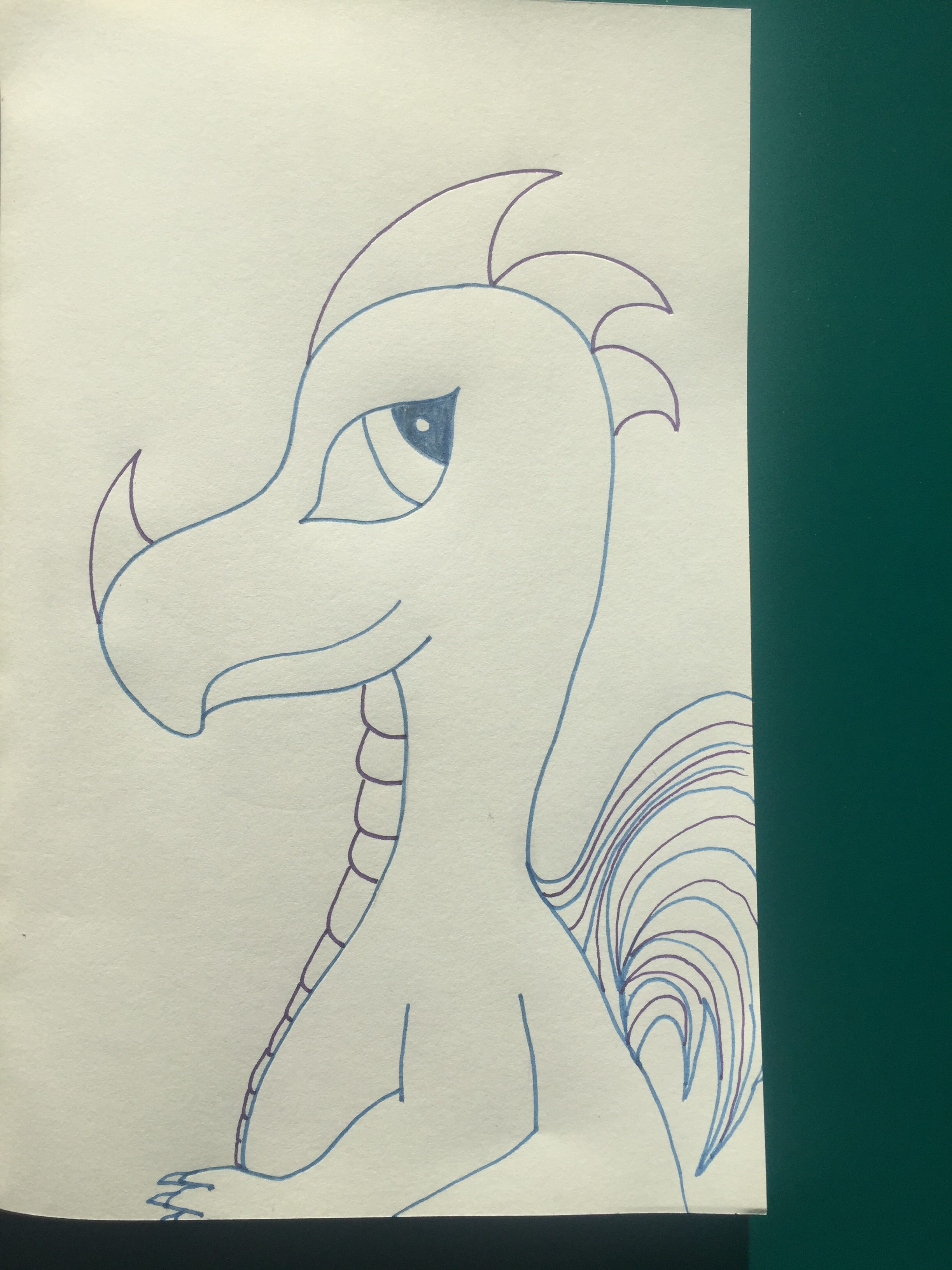 Three dragons for Mom on her birthday weekend. Today’s dragon is funny and sassy and sweet. She’s blue because that’s Mom’s favorite color. She has some weird stuff going on with her wings because I started making weird decisions.