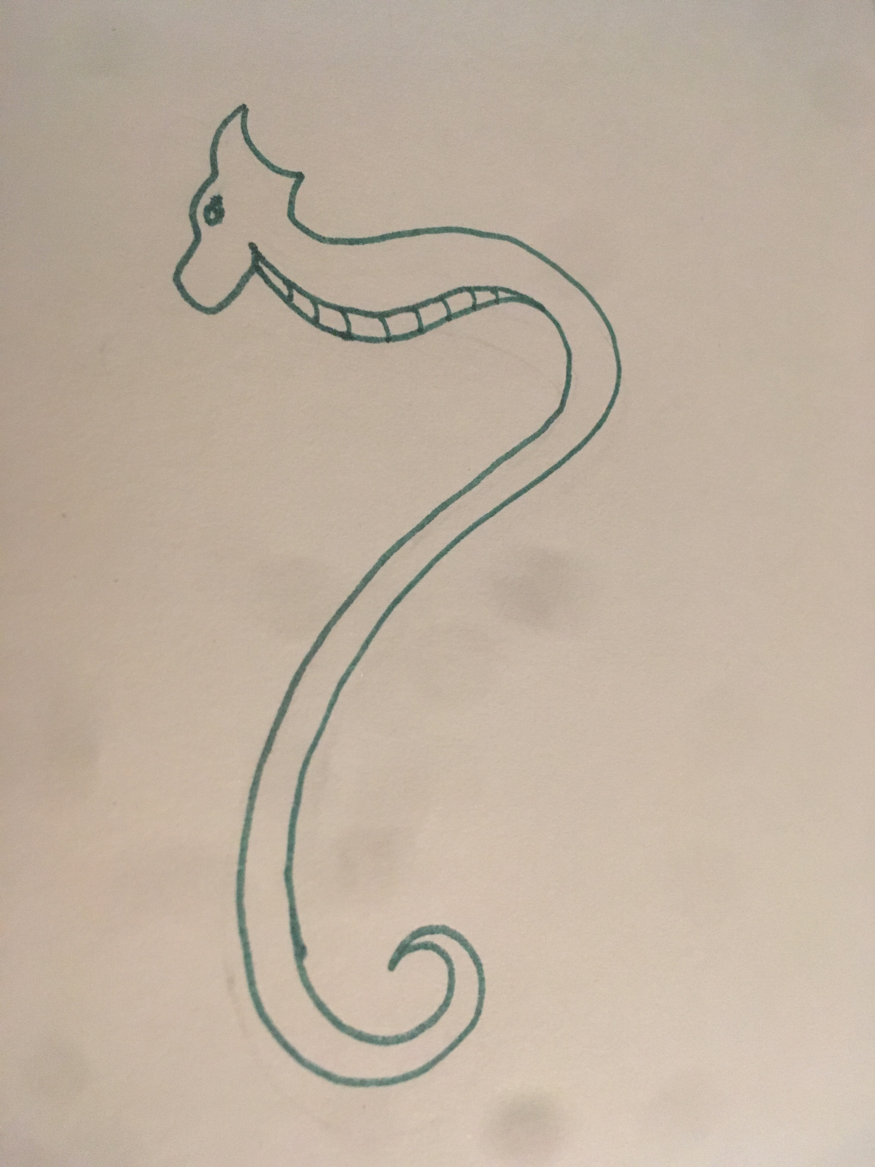 Here’s another dragon for mi madre. This one is elegant and graceful. This is how I remember my mother, singing in the church choir over our heads in the old church with the hard wooden pews and the kneelers that stuck against our bare knees.
