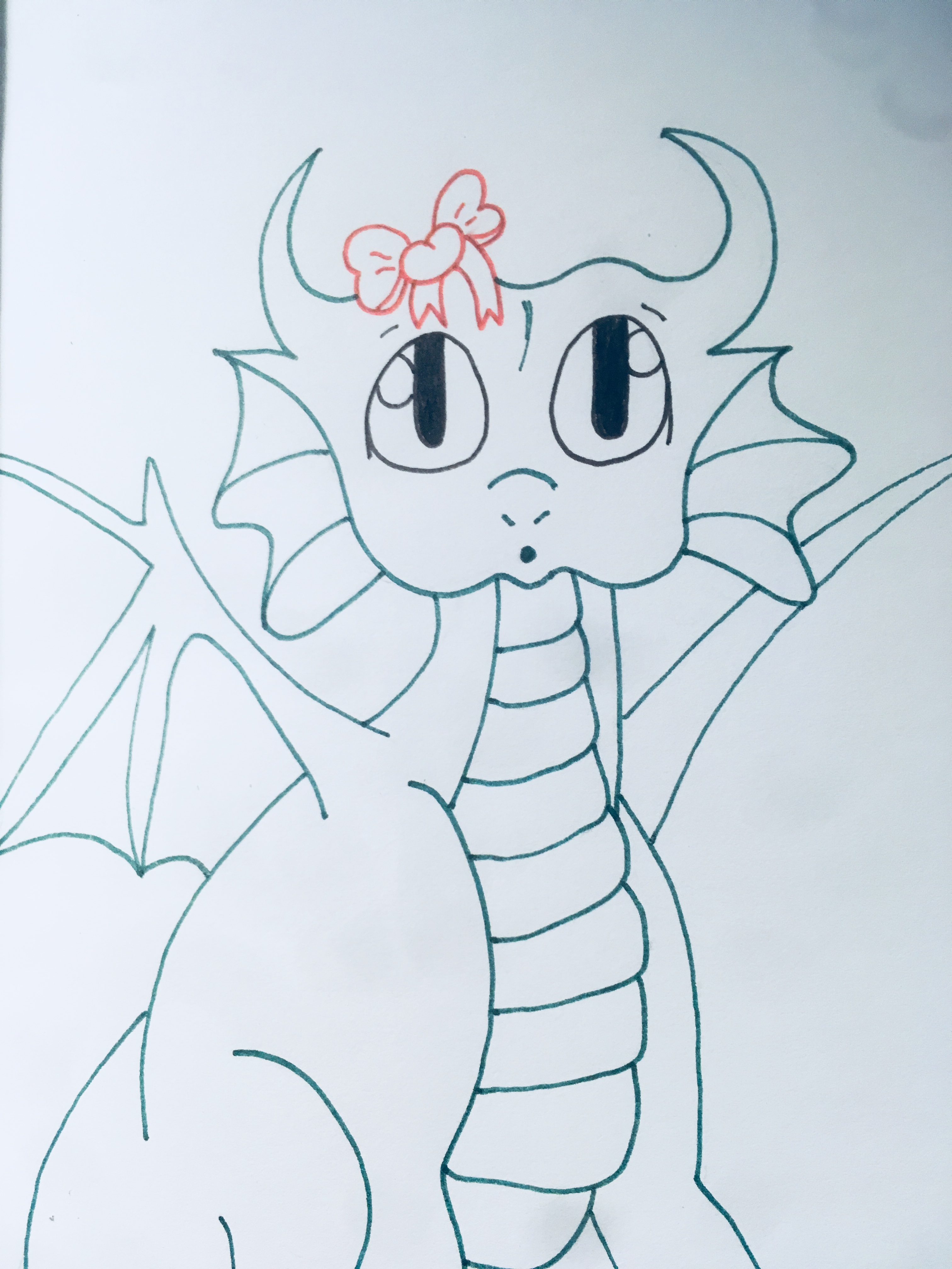 And yes, I’m still drawing dragons. I’m currently working from this reference, on a dragon I’m calling Woopsie…because that just seemed like her name to me. I also gave her a bow, and I just think she’s the cutest. Don’t you?