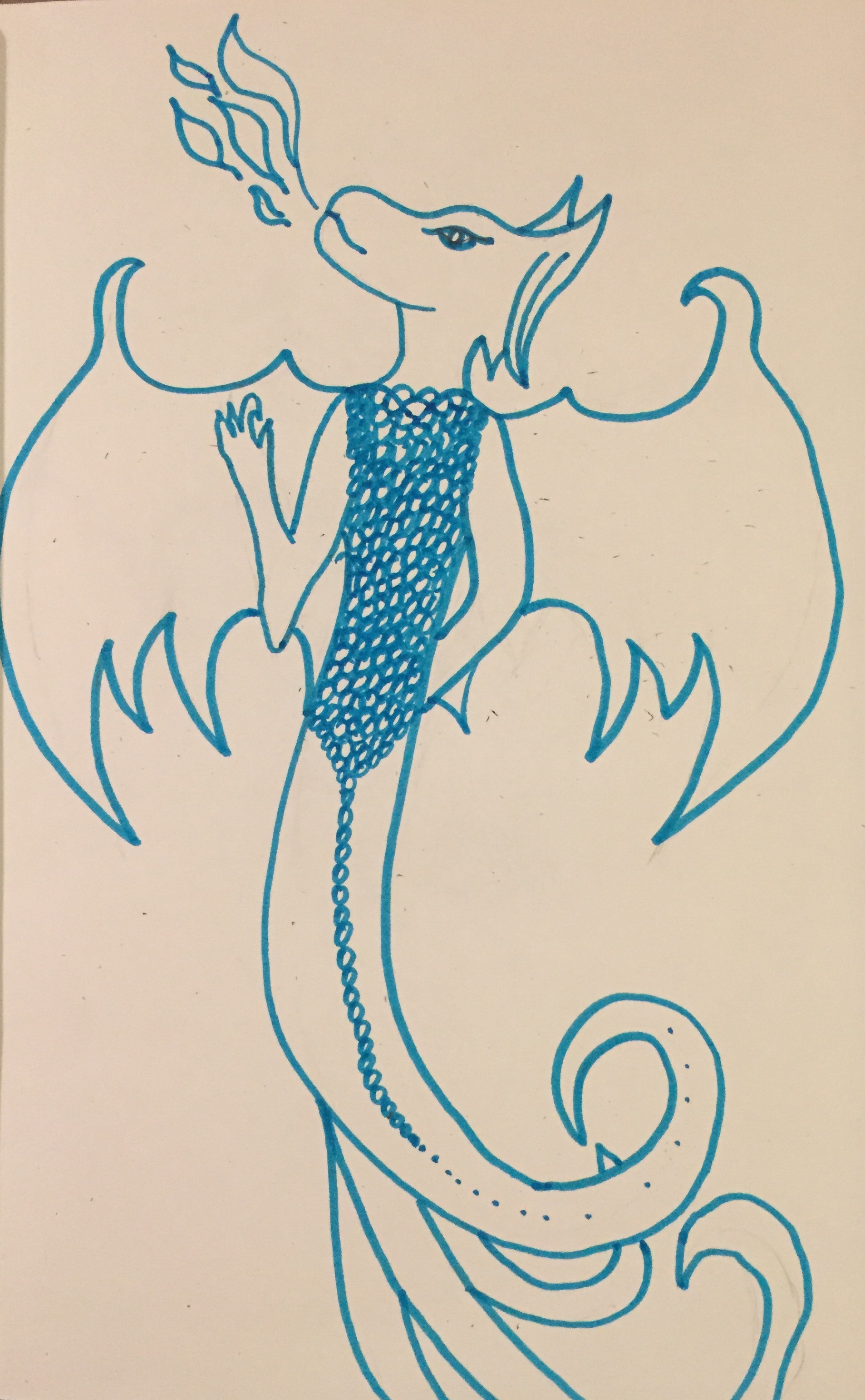 A couple of days ago, I finished this sketch of a dragon for Wonder to color.