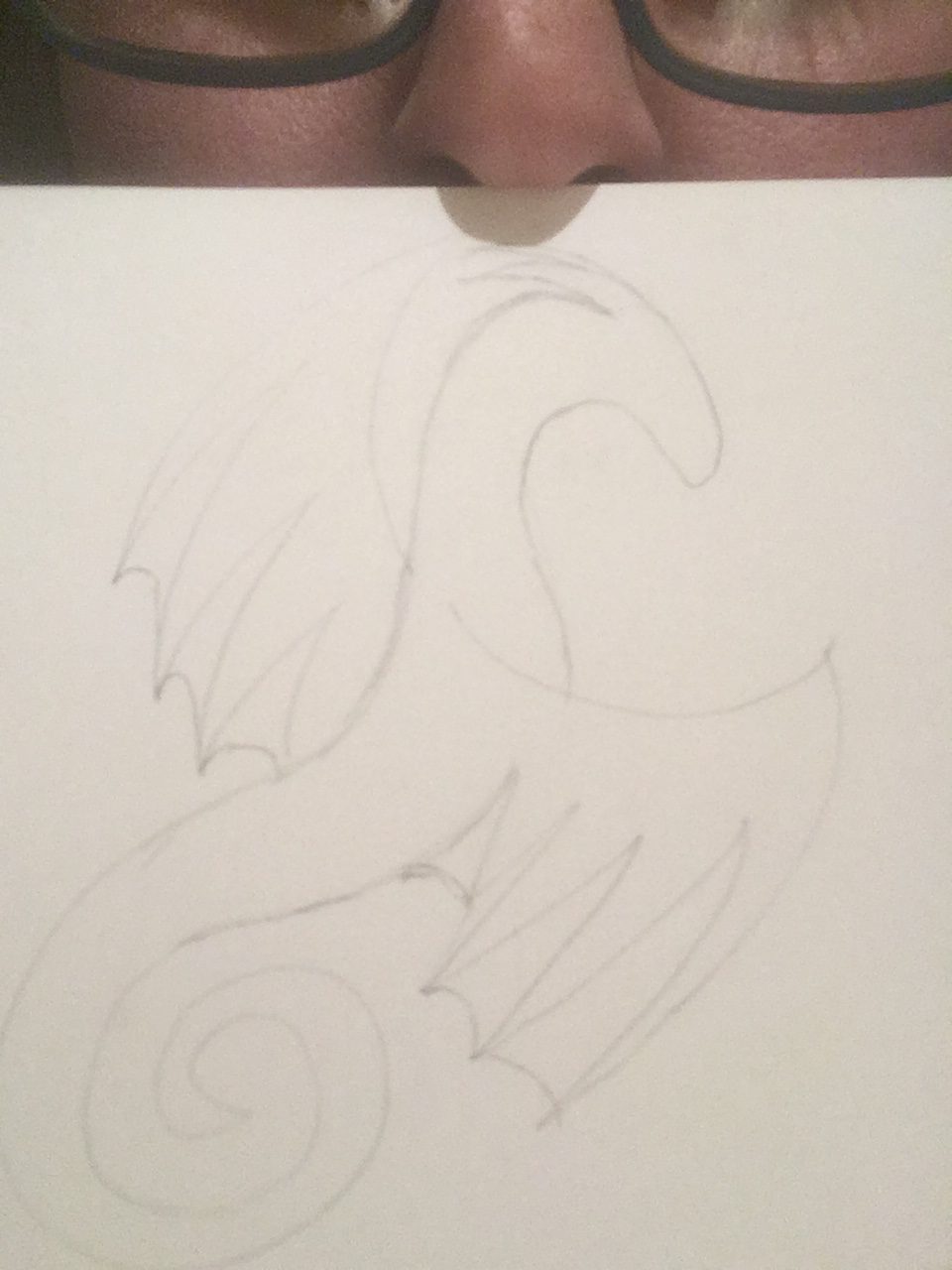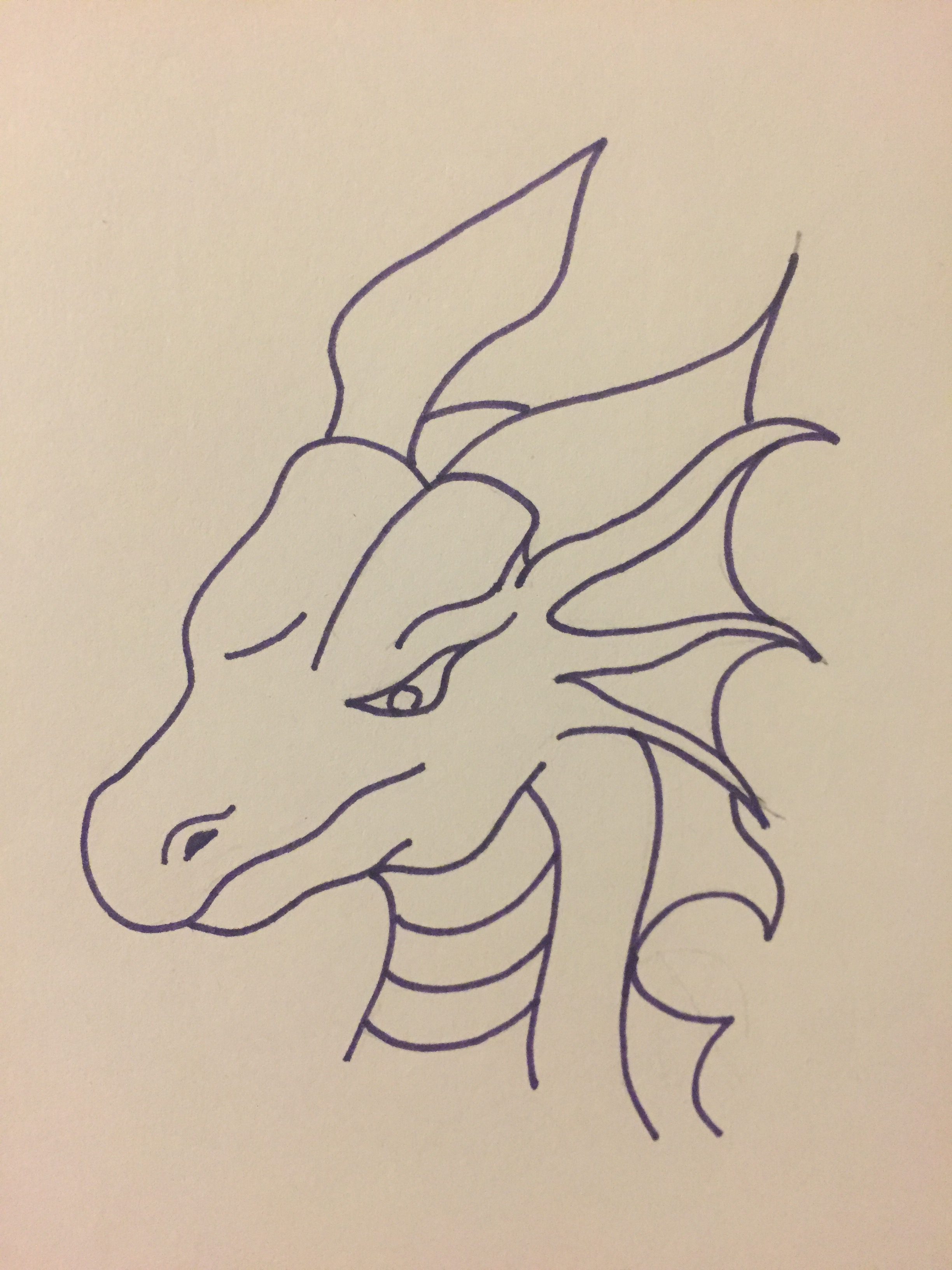 I’m trying to figure out a cool dragon outline. I have figured out that I always want to draw the dragon’s head profile on the left. When I draw it on the right, like this one, it’s hard to get the curves right when the dragon is headed into the east.