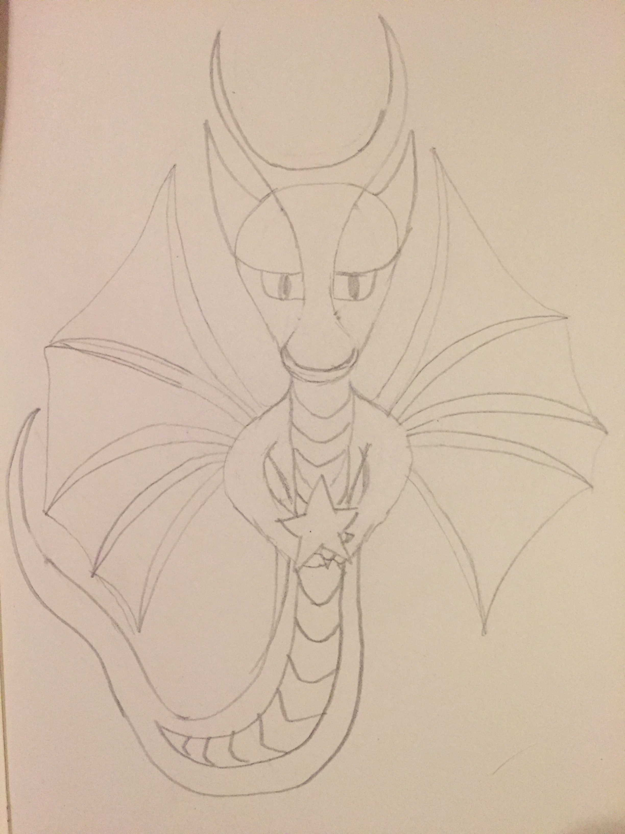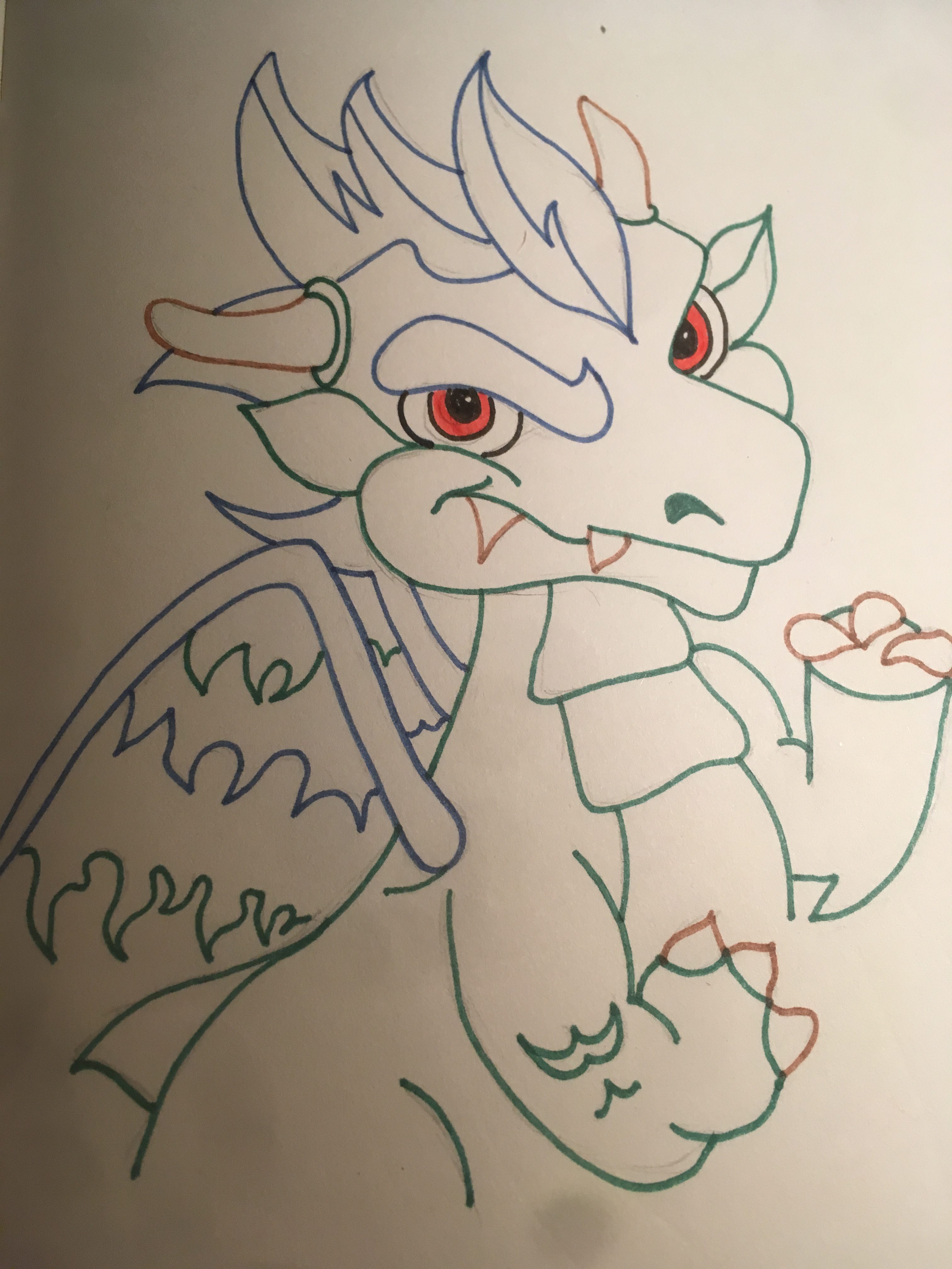I drew today’s dragon from this reference. He’s got a little belly. That’s what Bob said about this sweet litle guy. A screenshot of him was saved on my computer because sometime, at some point, I saw him and freaked the heck on out.