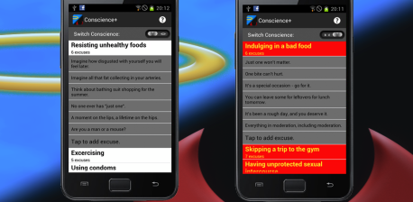 Conscience+ helps you make moral decisions by giving you a special switch. Flip the switch to “Good” and Conscience+ will help you do the right thing. Flip the switch to “Bad” and Conscience+ will help you justify immoral behavior. Of course, many of us have such a switch in our minds. My aim with this app is to teach us how flimsy our reasoning can be.