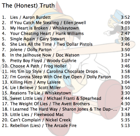 This is the list of songs that they have created to play in the store the whole day. I am just wondering if these songs will make the people in the store (employees and customers) more dishonest compare with a regular day…..