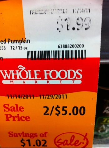 1) Regular price is $1.99 and the Sale price is? Two of the same item for $5 — which according to Whole Foods' quick calculation is a savings of $1.02. Amazing.