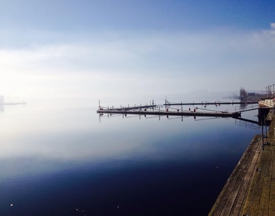 It was on a morning like this (slightly misty, with a cold sun just barely breaking through) that I walk-dictated Xavier’s initial Guy-confusion in All You Can Eat, and that waterside path will always make me think of those scenes.