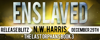 Enslaved by N.W. HarrisGenre: YA, post-apocalypticSeries: The Last Orphans #3Publication: Coming December 29th, 2015 by Clean Teen Publishing