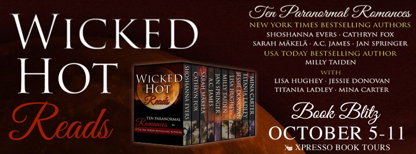 Wicked Hot Reads is a ten novel boxed set filled with steamy paranormal romances perfect for a naughty Halloween season. Did I mention steamy?? These are definitely for ages 18+!!
