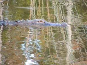 So today I’ll leave you with the photo of yet another resident in our new backyard, or more specifically the waterway just beyond it. Did you know that according to the Florida Fish and Wildlife Conservation Commission, alligators and dinosaurs evolved from a common ancestor, one they share with other reptiles? So, although alligators are classified as reptiles along with lizards, snakes, and turtles, they are actually more closely related to birds, whose direct ancestors were dinosaurs.