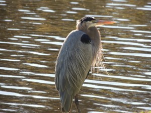 The Great Blue Heron is a gorgeous bird, and not easy to ignore. They can be 4 to 5 ft. tall, with a wing span of 5-6 feet. They very definitely catch our attention just by being there.