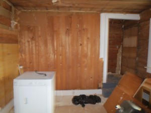 To keep the cottage character and some of the history, we’ll keep this wall behind stairwell exposed. It was covered with nasty insulation board until renovation began. Our builder also promises to plane some of the great ceiling boards and use them on the counter base. The best kind of recycling.