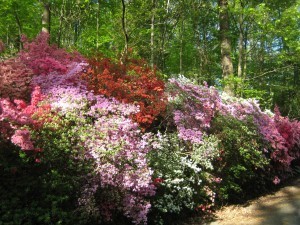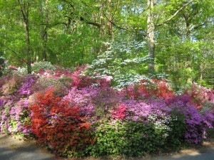 Nemo and I take a walk together every morning, another gift a beagle gives. This time of year we take the same walk every day. Up the road about half a mile from our house, is an embankment of azaleas on the edge of public land. A genius planted them. There are masses of every color, an azalea rainbow, and they open slowly, so that every day we have a different view to admire. The show goes on for weeks, and we try not to miss a moment of it.