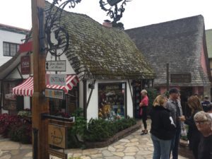 Monterey County is the only place I remember visiting that gives a twelve degree range when predicting temperatures for the day. That’s because you can leave your house where the sun is shining and descend into fog and cool weather. So far we’ve visited Carmel Village, Carmel-By-The-Sea, Garland Ranch, Fort Ord National Museum, and The Farm in Salinas. We’re learning to layer since the weather is unpredictable. Every place was fascinating, but the Hobbit Houses of Carmel-By-The-Sea were the best photo opp by far.