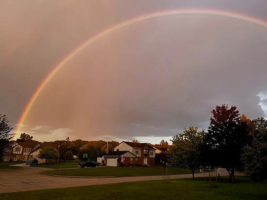 My wife and I stood outside our front door, only partially shielded from the smattering of big fat raindrops coming down, and took pictures of what you see above with our iPhones. The rain had come down pretty hard and had mostly stopped only a short while prior. The workday had been shit, the drive home through a storm had sucked, the news crossing my BlueSky feed, the only social media feed I have these days, was all bad. But then the rain cleared up and my youngest darted outside to see the rainbow overhead, and my wife and I followed. It was a nice reminder that not everything is shit and not everything is sinking into a hellish realm of depravity, even if it often feels like it, and even if everyone on social media insists it in fact is. It’s not. Not always. At least not here, for me, at that time. Life was, actually, pretty OK all in all, and it’s nice to have that kind of reminder.