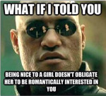 So far, so par for teenage friendship politics, right? Only a few years after we all graduated stuff started coming out of the woodwork. This nice guy whose endless niceness stopped him getting the girls had been sleeping on and off with a mutual friend during his time with the ex girlfriend. He no longer spoke to her, me, or another mutual friend whom he had asked out between girlfriends. When I learned this, I felt like my eyes had been opened, just a little, to what goes on in the mind of the kind of ‘nice guy’ who believes in the Friendzone. Unwittingly, it seems, I had friendzoned him.