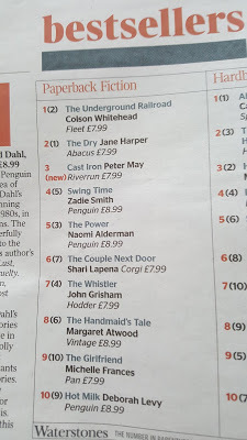 At number one, The Underground Railroad by Colson Whitehead is followed by Jane Harper's The Dry. At five is The Power by Naomi Alderman, at six The Couple Next Door by Shari Lapena followed by John Grisham's The Whistler at number seven. The Handmaid's Tale by Margaret Atwood, (now a television series) is number eight and Michelle Frances' The Girlfriend comes in at number nine.
