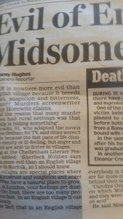 Attributing the above quote to Sherlock Holmes, the writer said: English villages are special places where hatred and mistrust and suspicion and anger and bitterness have a natural place to grow. In a city, in London, your feelings get dissipated, it's too loud, there are too many people, life is too fast. In an English village it can all fester slowly.'