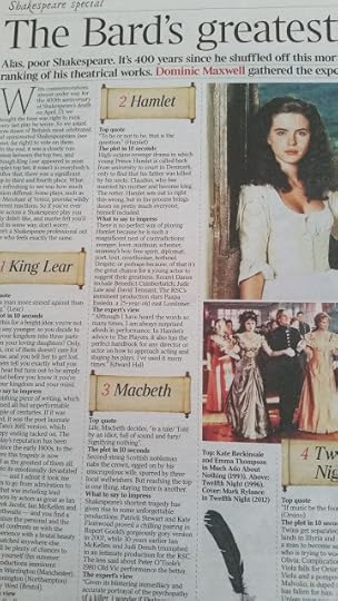 Meanwhile, tomorrow's Shakespeare special will be charting the great man's ten best death scenes. Which means I have work to do. It will take me the rest of the day, at least, to guess which they are.